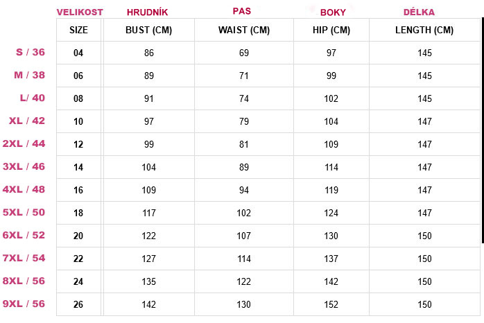 *Velikostní tabulka: ženy - kabáty, bundy, trička apod.*