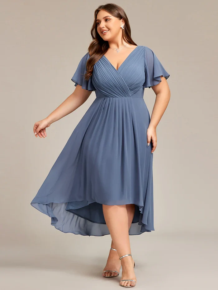 Přední horní díl šatů velmi hezky sedí - je nařasený a překřížený s výstřihem do "V"