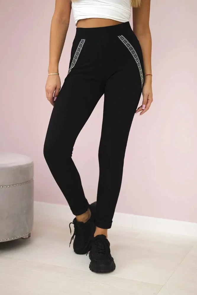 Bavlněné kalhoty s ozdobnou légou a kamínky