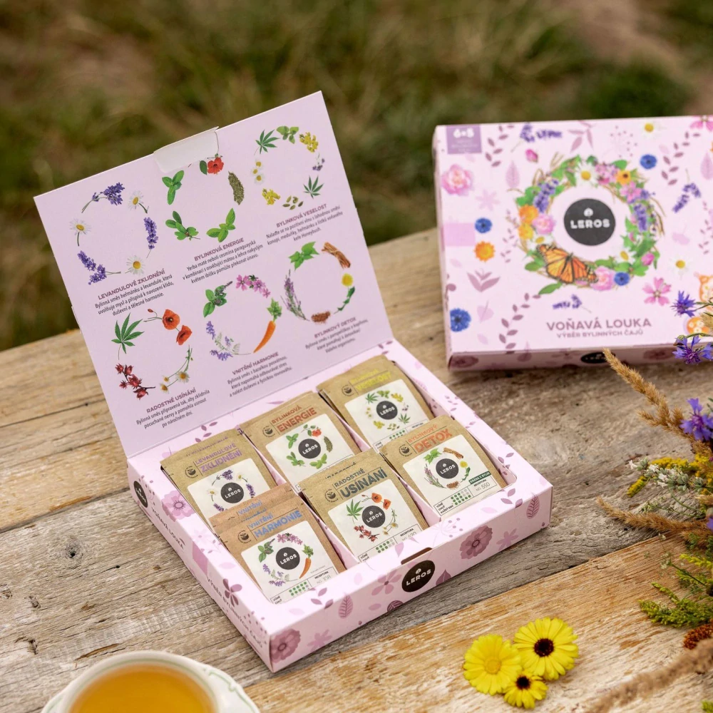 - LEROS Dárková kazeta Voňavá Louka 6x5 ks - celkem 30 kusů - výběr bylinný čajů
