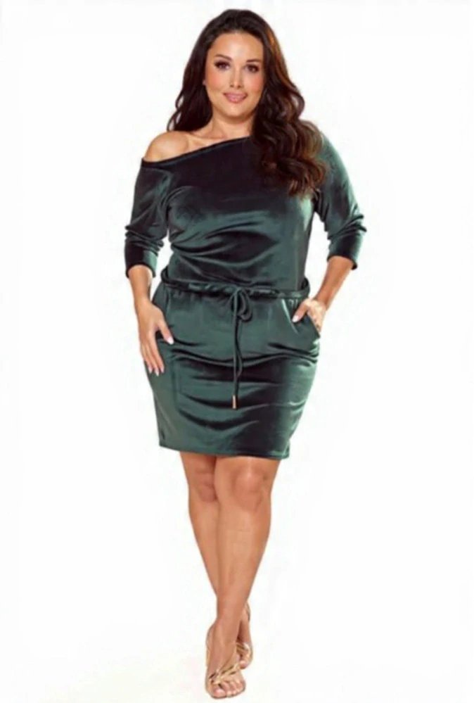 - Numoco 13-134 Sportovní šaty s vázáním a kapsami - velur - zelená XXL