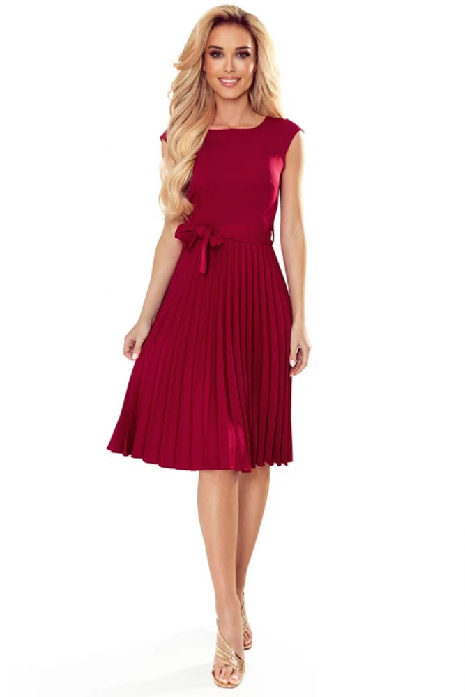 Numoco 311-11 LILA Plisované šaty s krátkým rukávem - barva vínová XXLdo 7 dnů959 Kč