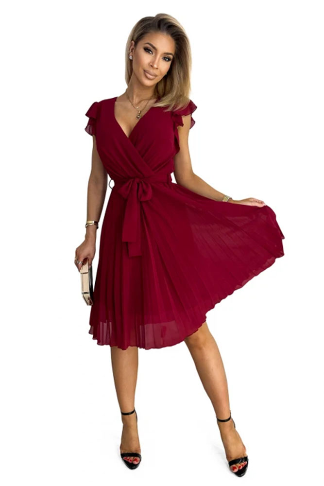 - Numoco 374-2 POLINA Plisované šaty s výstřihem a volány - Vínová barva XL