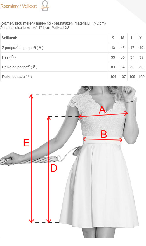 Délka od podpaží (D) | 83 | 84 | 86 | 86 |