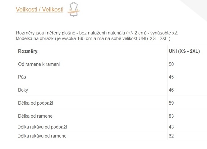 | Rozměry: | UNI (XS - 2XL) |